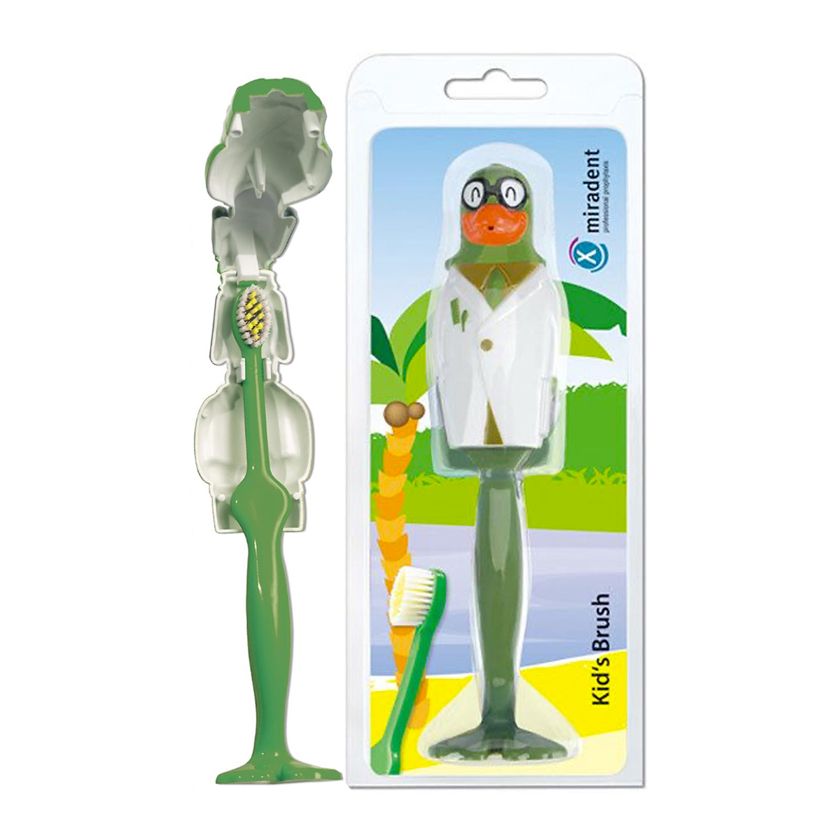 <b>Spazzolino per bambini con capuccio protettivo a forma di animali</b> Testa piccola con campo di setole ovale, il busto è costituito da un cappuccio apribile, l'apertura del cappuccio protettivo consente la circolazione ottimale dell'aria, il manico ergonomico funge anche da supporto. Per bambini a partire dai quattro anni. Pappagallo cod. 630-047 Larident Confezione: 1 pezzo