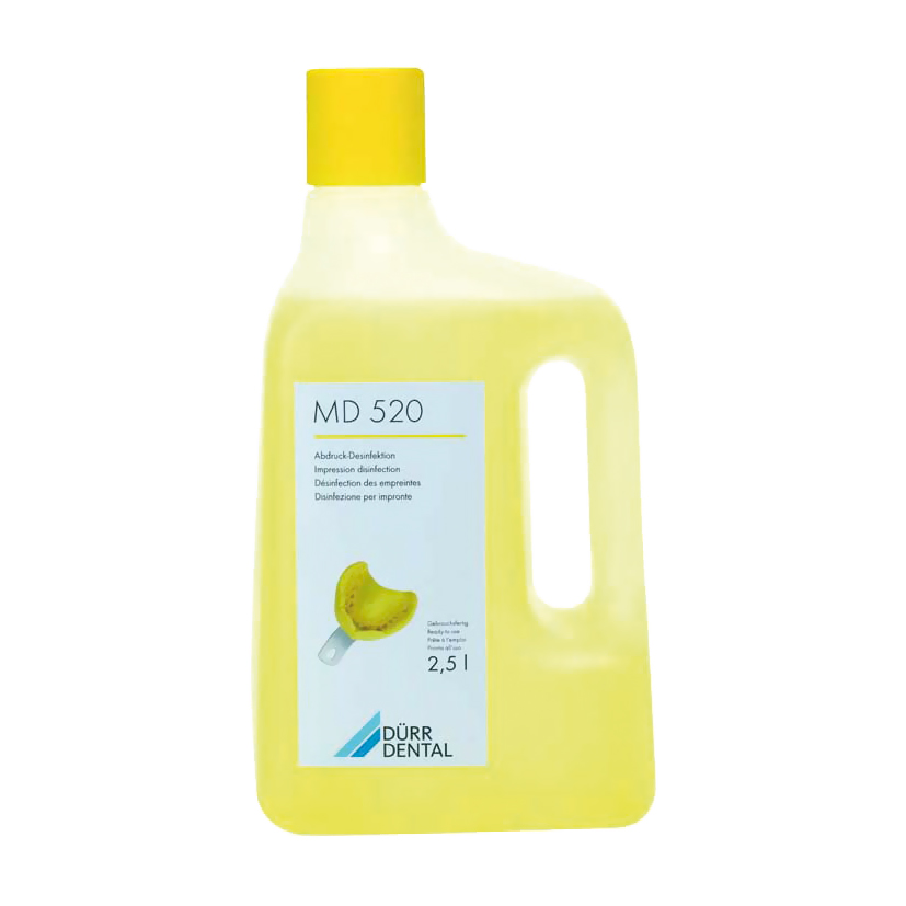MD520 Disinfettante per impronte – flacone da 2,5 lt. Dürr CDA520C6150 Soluzione pronta all'uso a base di glutaraldeide e ammoni quaternari per disinfezione di impronta. Utilizzabile con tutti i materiali compresi alginati e polieteri.