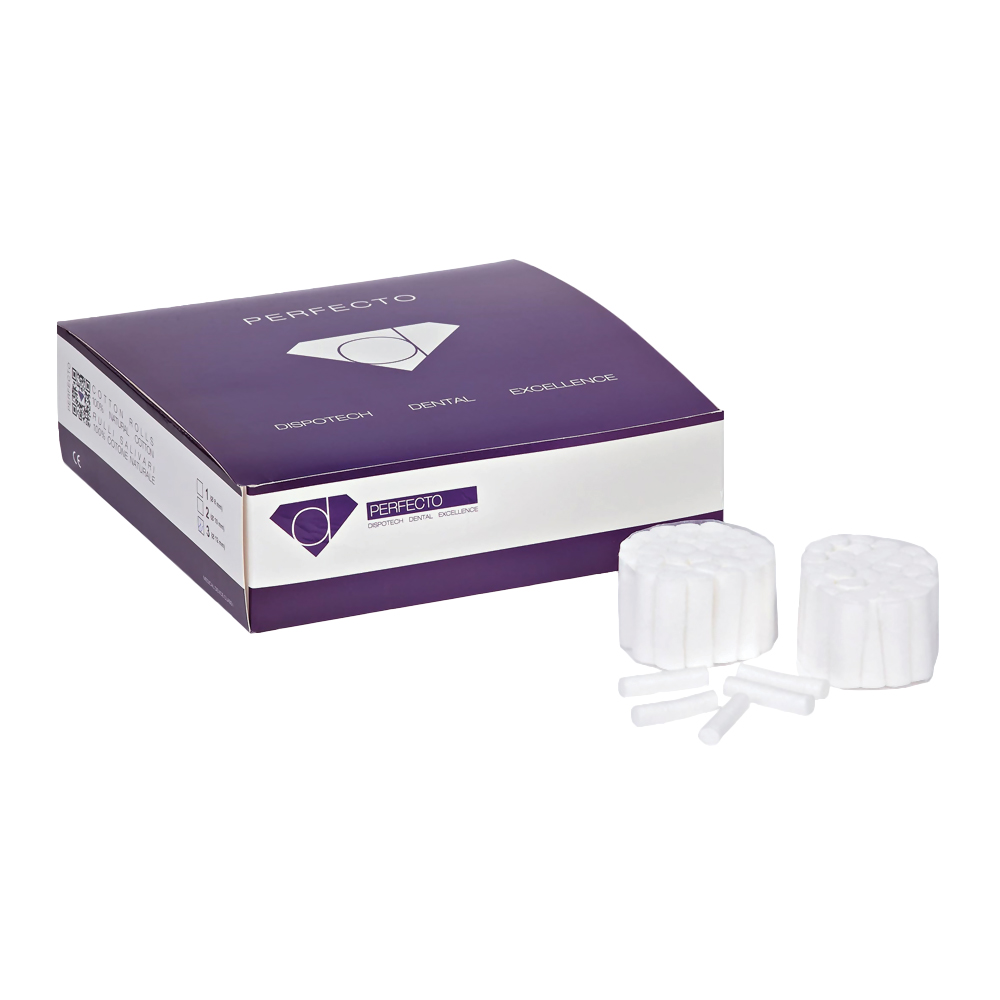 Rulli salivari Misura 3 ø12 mm in puro cotone non clorinato a fibra lunga (lunghezza fibra 11-13 mm) sono ad alto potere assorbente (superiore a 20g/g) e sono insolubili in acqua. Confezione: 300 g