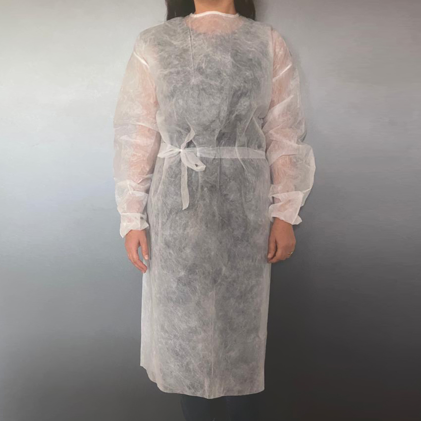 Camici bianchi monouso in TNT non sterili chiusura sul retro polsini elastici – confezione da 20 pz.DPI Cat.3 Unien 14126:2004 CAM–M–01 DentaljMonouso in TNT idrorepellente 100% polipropilene + membrana in poliuretano – 58 gr/mq