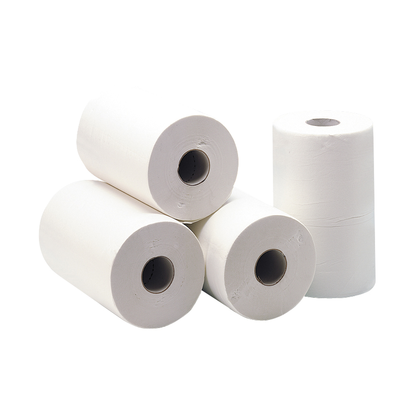 Asciugamani in rotolo “mini” a doppia estrazione, 2 veli di pura cellulosa. Confezione: 12 rotoli da 180 strappi cad. - Altezza 20 cm.