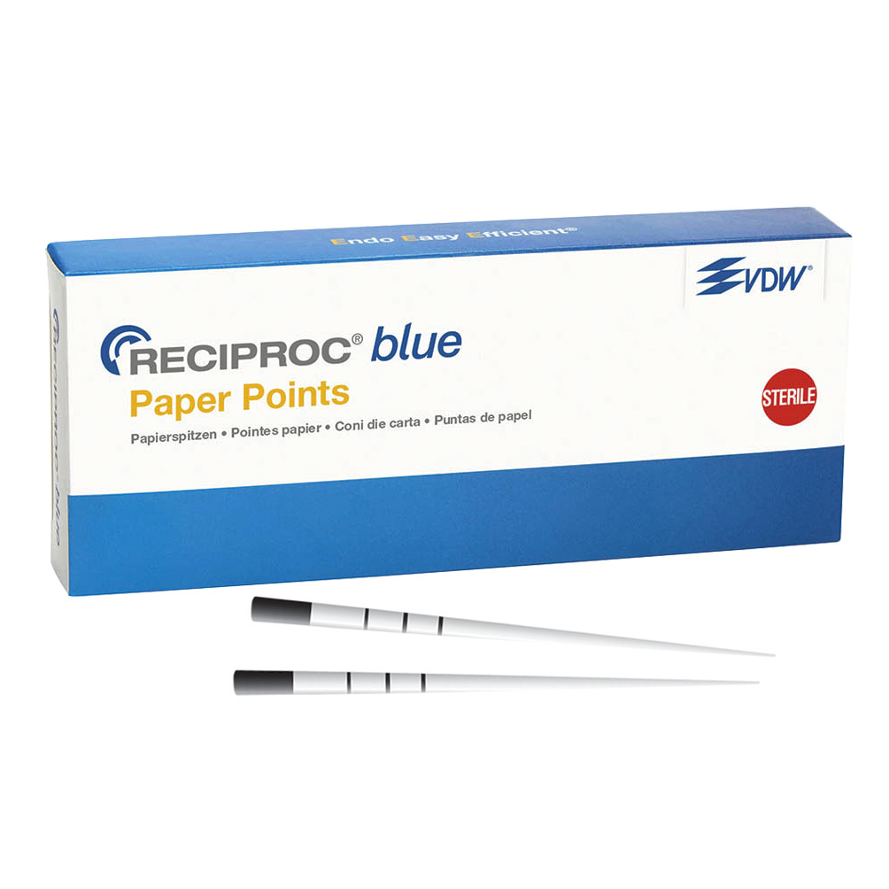 Coni di carta Reciproc Blue R40 lunghezza 29 mm , iso 40 , codice colore nero , 180 punte sterili VDW V040259029040 CONI PUNTE CARTA PAPIER