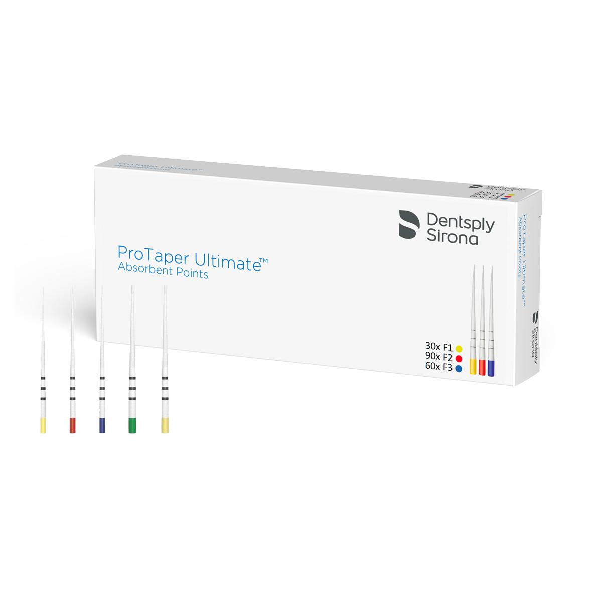 <b>Punte di carta ProTaper Ultimate</b> • Sistema adattato alle forme coniche variabili create dagli strumenti ProTaper Ultimate • Pre-sterilizzato per comodità • Cinque misure per adattarsi a tutti i canali preparati con ProTaper Ultimate e per assicurare la completa asciugatura dopo l’irrigazione • Lettura facile grazie al codice colore degli strumenti ProTaper Ultimate Confezione: 180 pezzi