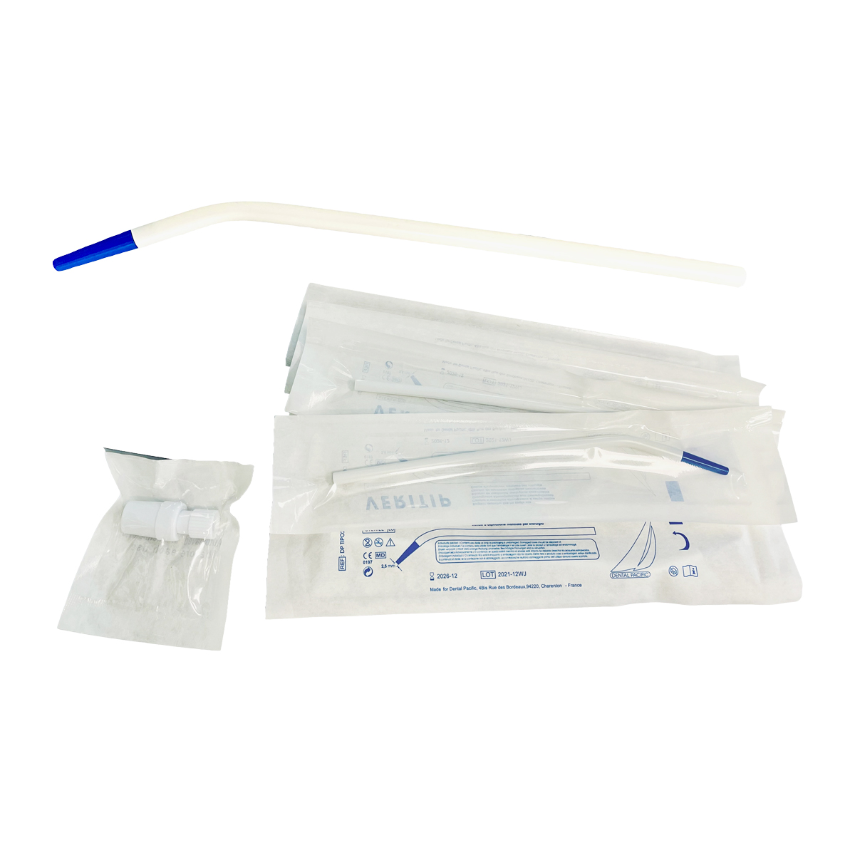 Canula chirurgica sterile in plastica con adattatore • Puntale diametro 2,5 mm • Adattatore doppio per il collegamento a tubi di aspirazione ø 11 mm e ø 16 mm • Confezionate singolarmente Confezione: 20 pz con adattatore