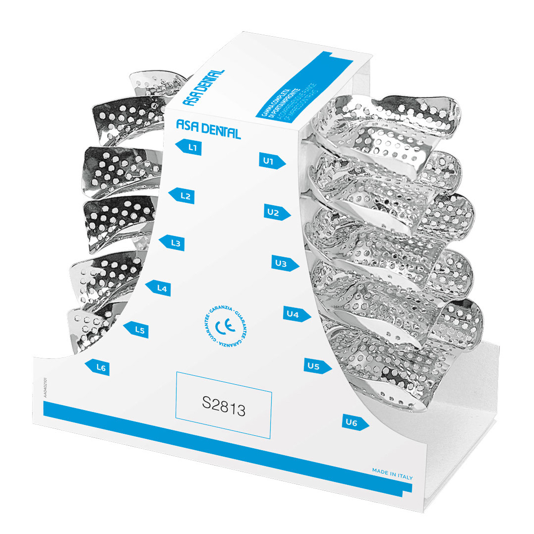 Serie portaimpronte alluminio e acciaio inox Serie completa di 11 pezzi + compasso - edentolous - S2813 Asa