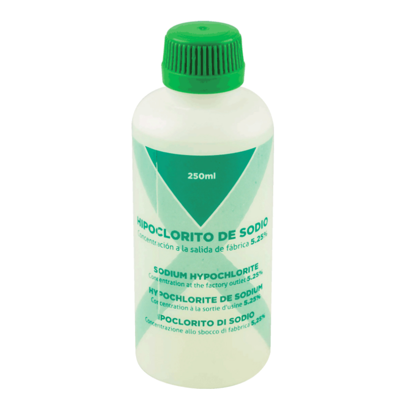 Soluzione acquosa di ipoclorito di sodio al 5,25% per l’irrigazione, la pulizia e la disinfezione dei canali radicolari. Confezione: Flacone da 250 ml. Prodotto simile al NICLOR 5 cod. 7050910