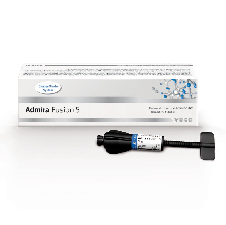 Materiale ORMOCER® nano-ibrido con sistema colori semplificato. Grazie a questo sistema, tutte le 16 tonalità VITA® Classical possono essere incluse in soli cinque cluster-shades: adattando in modo specifico la matrice resinosa alle dimensioni e alle proprietà ottiche delle particelle nanoibride, è possibile ottimizzare la diffusione della luce e la stratificazione di più colori non è necessaria. Confezione: siringa da 3 g