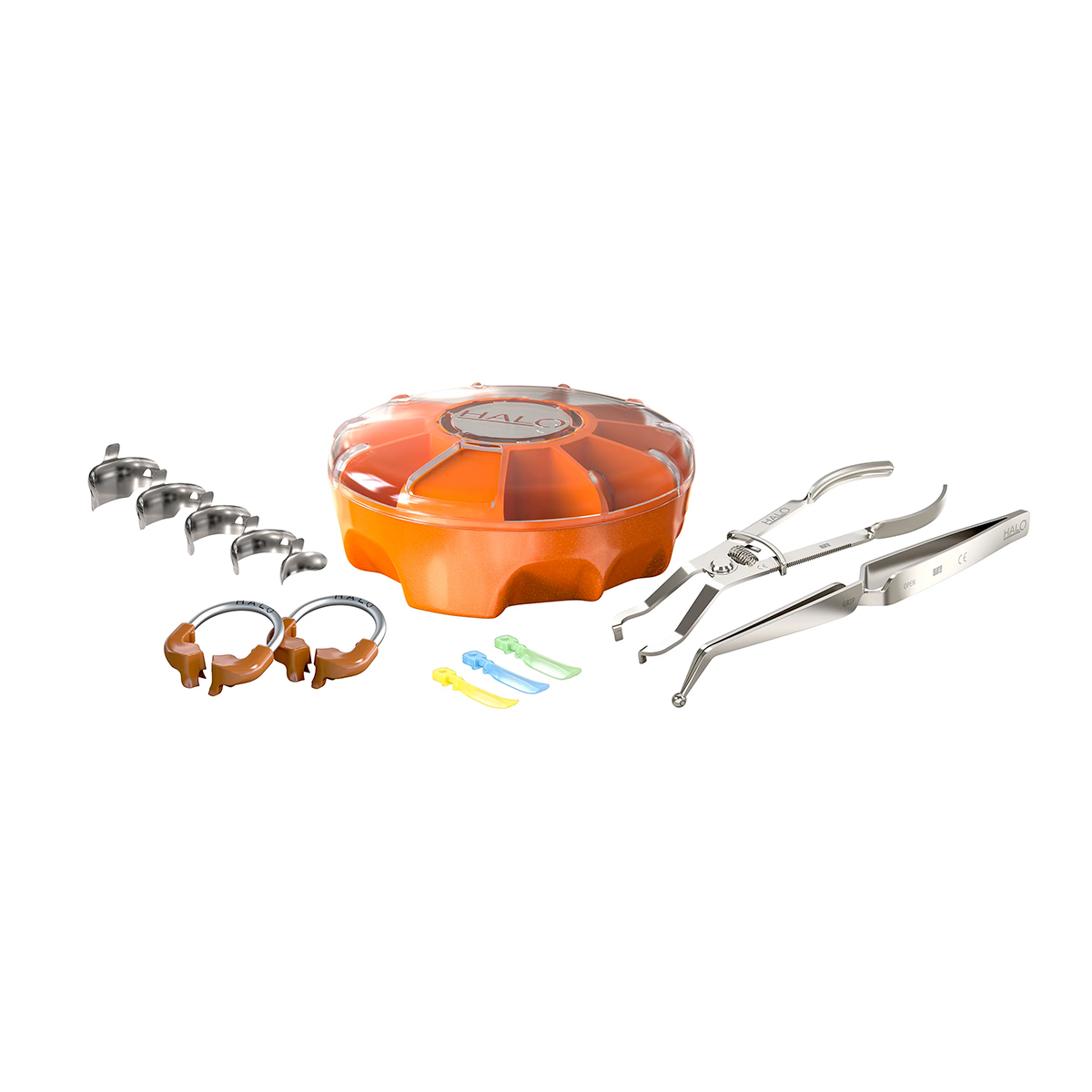 Il sistema di matrici sezionali Halo consente di ottenere restauri anatomicamente naturali riducendo il tempo per la modellazione e rifinitura degli stessi. Assicura dei punti di contatto stretti a garanzia della longevità del restauro. La massima separazione tra i denti è ottenuta grazie alla forza dell’anello in Nitinol e alla forza attiva dell’incuneamento (active wedging). Questo sistema ideale di separazione consente facilmente di restaurare singoli denti o restauri back-to-back. Il design unico della punta dell’anello Halo permette alla matrice di adattarsi completamente alla preparazione dal margine gengivale alla cresta marginale e aiuta a mantenere la forma anche in preparazioni estese, garantendo sempre dei restauri che si adattano all’anatomia naturale del dente. Quando i restauri presentano perfetti punti di contatto e una curvatura anatomica, il tempo per la loro modellazione e rifinitura si riduce. Halo garantisce ciò per ogni singolo restauro. Il sistema di matrici sezionali Halo include anelli in Nitinol, matrici in acciaio inossidabile e cunei. Ciascuno dei componenti è progettato per lavorare insieme e consentire di ottenere dei restauri anatomicamente naturali. • La super elasticità del Nitinol mantiene la forza durante le procedure e riduce la fatica ciclica • Hanno una durata di oltre 1000 utilizzi • Le estremità, ricoperte in nylon rinforzato con vetro, sono robuste e non collassano verso l’interno della preparazione con il rischio di creare preparazioni sottocontornate • Il loro profilo stabilizza la matrice in modo anatomico e naturale, eliminando il rischio di eccedenza di composito e riducendo il tempo di rifinitura • Sono sovrapponibili, facilitandone l’uso con restauri MOD e II Classi • Forniscono una separazione ideale per restauri back-to-back <b>Confezione KIT HALO Matrici Original (4831):</b> • 2 anelli universali • 25 matrici di ciascuna dimensione: 3,5 mm, 4,5 mm, 5,5 mm, 6,5 mm, 7,5 mm • 25 cunei di ciascuna dimensione: S, M, L • 1 organizer HALO • 1 pinzetta • 1 pinza allarga-anello