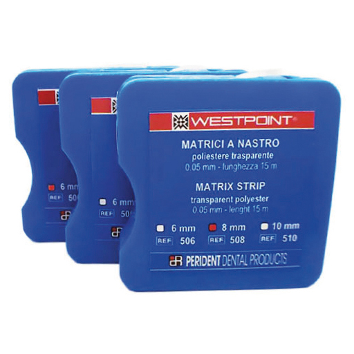 Matrice a nastro trasparente 8 X 0,05mm lunghezza 15 mt. 508 WestpointMatrici a nastro in poliestere trasparente 0,08 mm permeabili alla fotopolimerizzazione