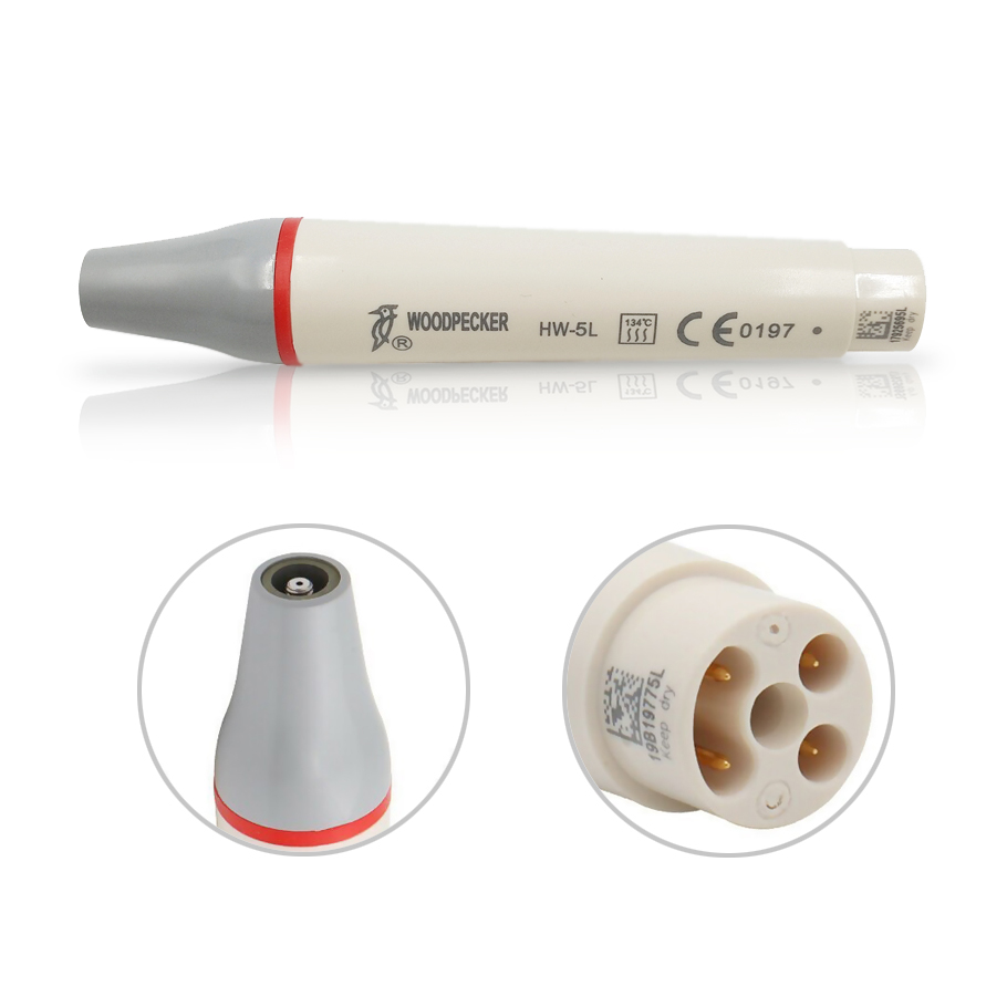 Manipolo ablatore scaler piezoelettrico a luce led Woodpecker compatibile ablatore EMS, autoclavabile 135°, HW-5L 842/20 • Nuovo manipolo di ricambio in Peak autoclavabile (135°C) • Pių performante con tecnologia indolore • Interno in titanio • Compatibile EMSŪ (EN060) completo di luce a LED